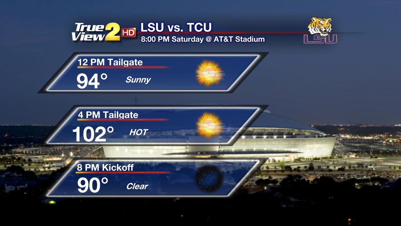 Football Forecast: If you are headed to Dallas for the LSU game this Saturday get ready for a VERY HOT tailgate. It will be mostly sunny with highs in the lower 100s! Fortunately, the game is indoors in Jerry's World, so it will be cool and comfy in there.
